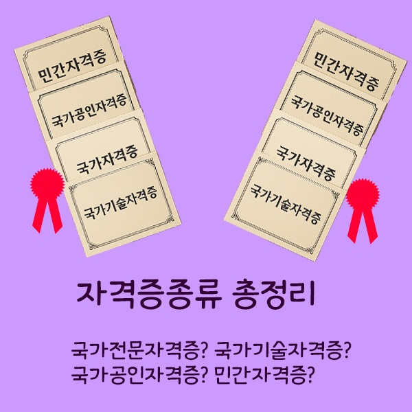 취미로 따놓는 자격증은 본인의 만족도와 공부의 효율을 위해서 민간자격증을 따놓아도 좋긴 하지만, 취업 시 필요한 자격증이라면 국가가 신설하여 관리, 운영하는 자격을 획득하여 준비하는 것이 좋기 때문이다.