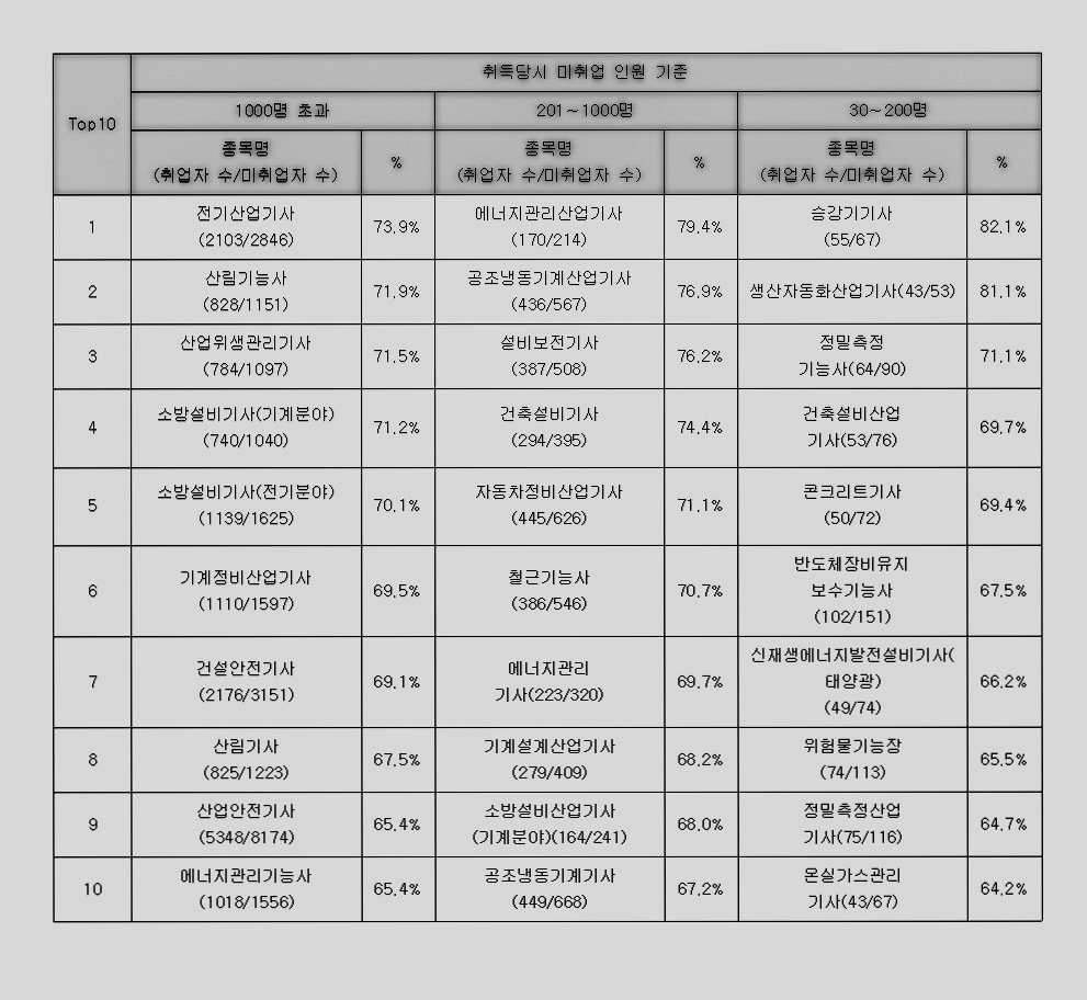 취업 시장에서 경쟁력을 높이기 위해서는 어떠한 자격증을 취득해야 할지를 고민한다. 자격증 취득이 취업에서의 경쟁력을 높이는것은 분명하지만, 단순히 많은 사람들이 취득하는 자격증을 공부하는것보다는 실제로 취업률이 높은 자격증을취득하는것이 취업에 유리 하기 때문이다.
